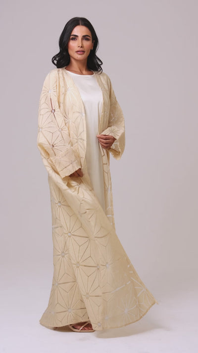 The Organza Diamond Light Abaya features exquisite diamond-patterned organza fabric, creating a luxurious and captivating look. Its flowing silhouette and elegant design make it perfect for special occasions or adding a touch of glamour to your everyday ensemble.